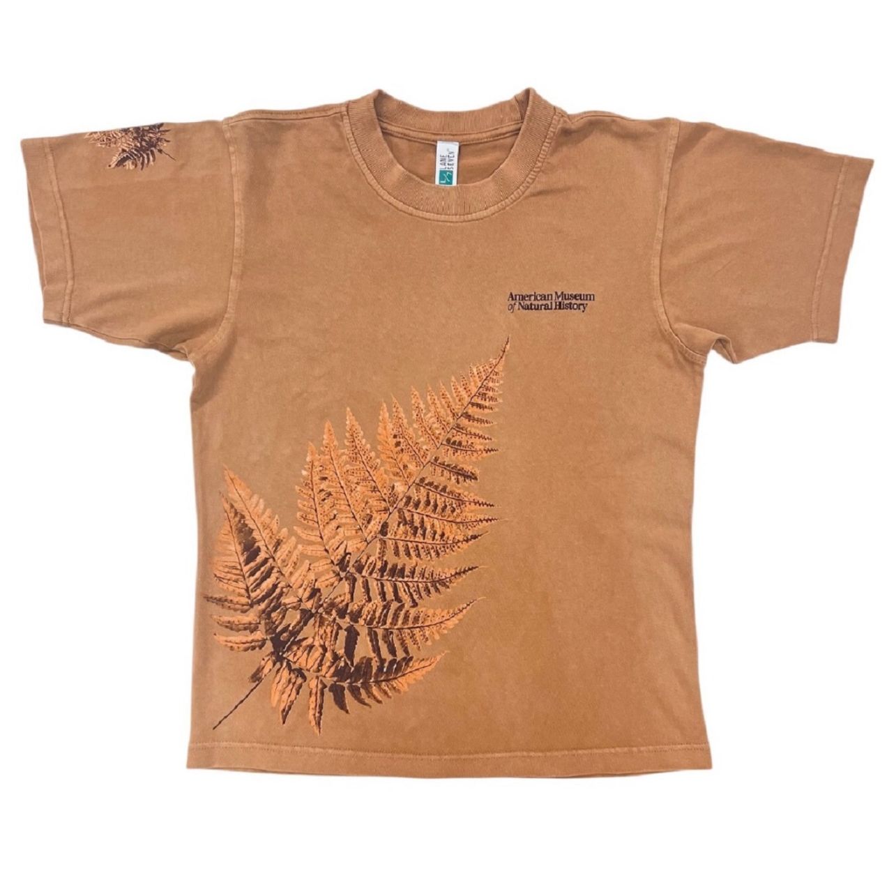 Nature is calling and this vintage style t-shirt has answered. It's the perfect Fall to Winter t-shirt in heavy duty 100% combed cotton featuring a big beautiful fern against a deep tan background and the Museum logo. Adult sizes. Machine washable. Other fern-themed items also available.