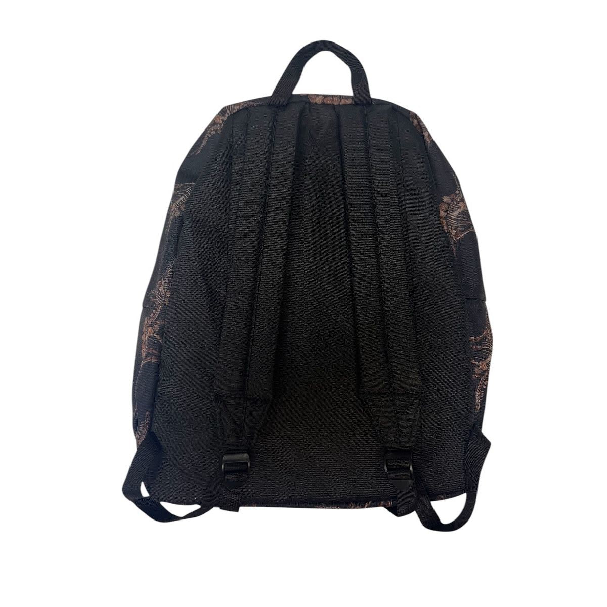 A Stegosaurus skeleton pattern covers this exclusive AMNH black water-resistant nylon backpack with the Museum logo on the outer pocket. Padded adjustable straps. Hang loop. Durable and fashinoable. Measures approximately 16 x 14 x 5 inches. Journal and insulated thermos also available in this pattern.